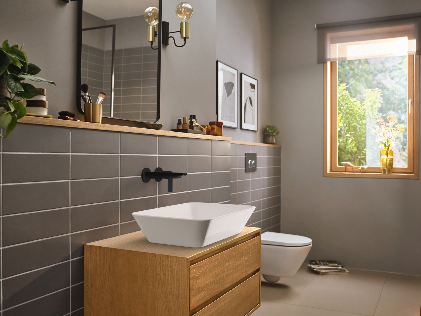bestehend aus Einhebel-Waschtischmischer UP für Wandmontage, Ablaufgarnitur, Ausladung 200 mm, Normalstrahl, max. Durchflussmenge bei 3 bar 5 l/min, Keramikmischsystem, Temperaturbegrenzung einstellbar, für Durchlauferhitzer geeignet, unverschließbare Ablaufgarnitur, Ablaufventil Metall, Anschlussart Grundkörper, Anschlussgröße DN 15, Griff rechts oder links positionierbar, abhängig von der Installation des Grundkörpers, EcoSmart, AirPower Technologie