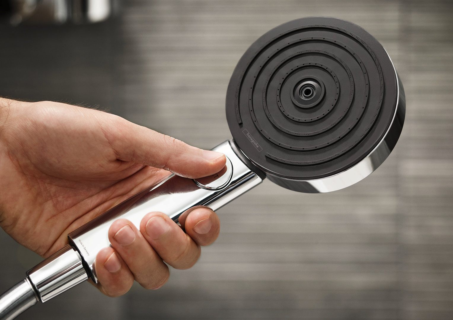 Brausekopfgröße 105 mm, Strahlarten PowderRain, IntenseRain, Massagestrahl, Strahlartenumstellung durch Select-Taste, max. Durchflussmenge bei 3 bar 11,4 l/min, Mindestfließdruck 0,9 bar, mit innenliegender Wasserführung, ausspülbares Schmutzfangsieb, Anschlussgewinde G 1/2, Anschlussgröße DN 15, Oberfläche Strahlscheibe graphit, für Durchlauferhitzer geeignet, Quick-Clean Antikalksystem, XXL Performance