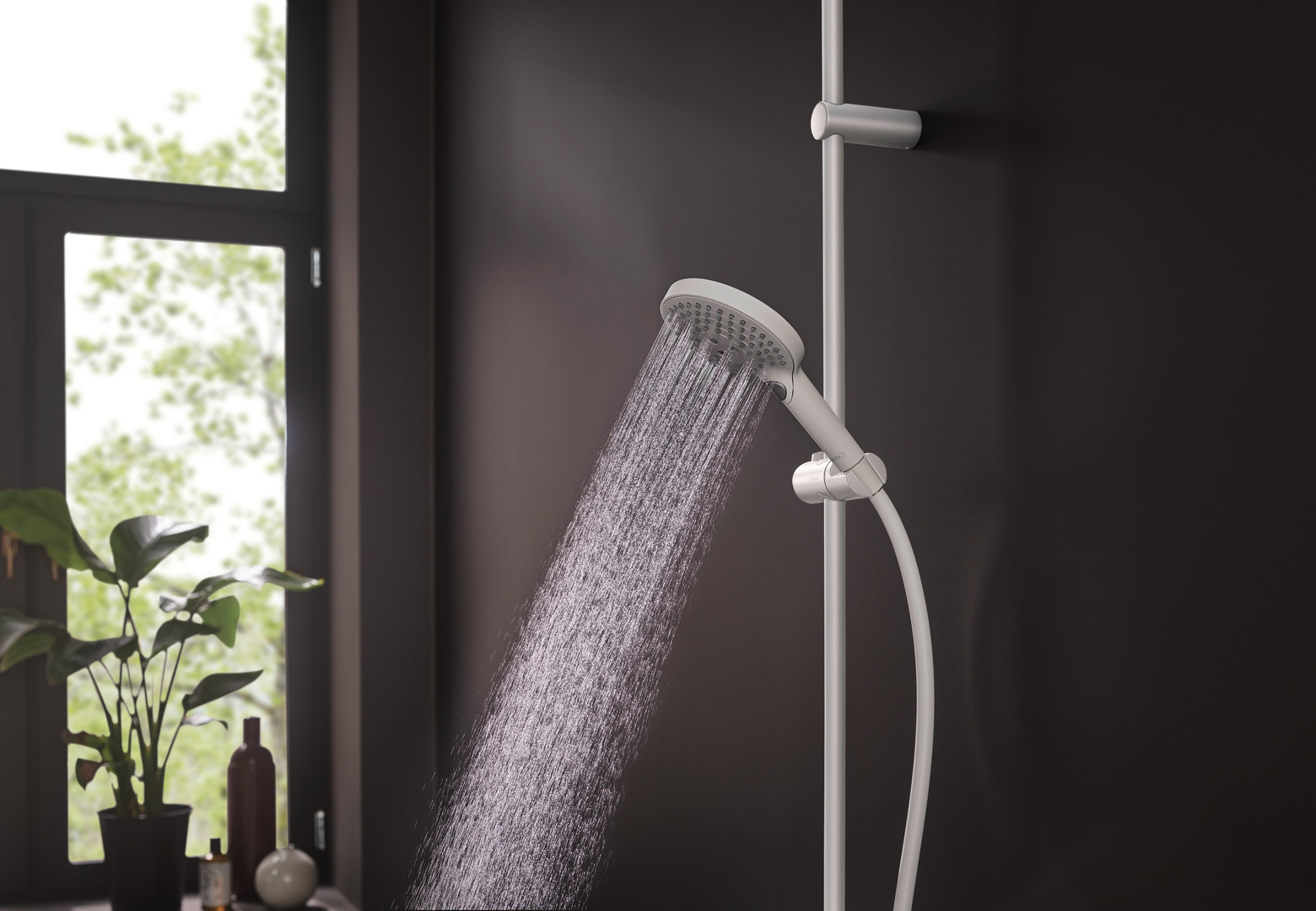 Strahlumstellung durch Select-Taste, Strahlarten PowderRain, Rain, Whirl, Strahlscheibe aus Kunststoff, max. Durchflussmenge bei 3 bar 11 l/min, Mindestfließdruck 1,2 bar, mit innenliegender Wasserführung, ausspülbares Schmutzfangsieb, Anschlussgewinde G 1/2, für Durchlauferhitzer geeignet, AirPower Technologie, Quick Clean Antikalksystem, XXL Performance