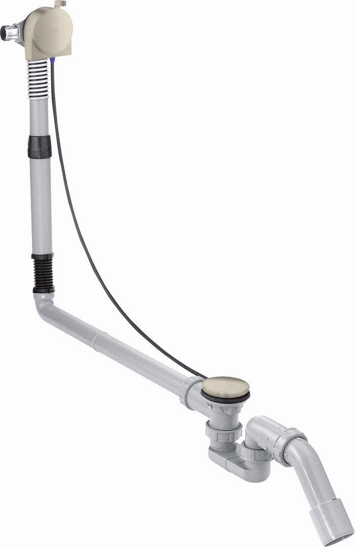 für Sonderwannen, bestehend aus Grundkörper, Wannensiphon, Grundkörper, Fertigset, mit Faltenbalg für Wannen mit schrägem Wannenrand, Bowdenzuglänge 780 mm, Wasseranschluss Zulaufschlauch links, DN 20