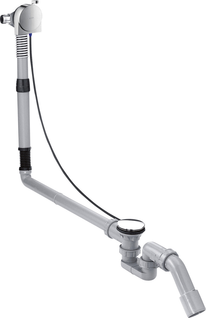für Sonderwannen, bestehend aus Grundkörper, Wannensiphon, Grundkörper, Fertigset, mit Faltenbalg für Wannen mit schrägem Wannenrand, Bowdenzuglänge 780 mm, Wasseranschluss Zulaufschlauch links, DN 20