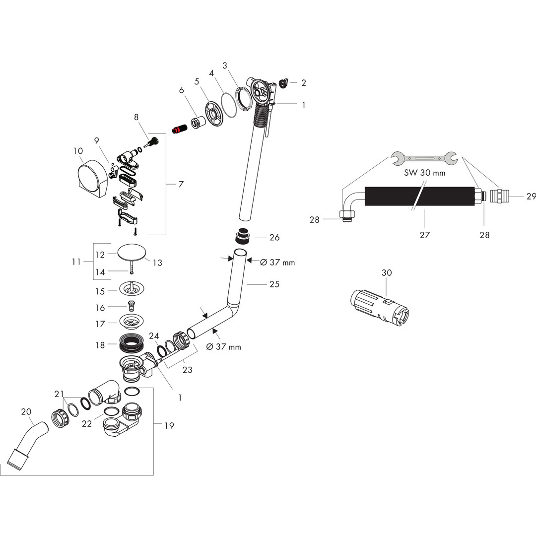 Variante: hansgrohe Komplettset Exafill S, Wanneneinlauf, Ab- und Überlaufgarnitur