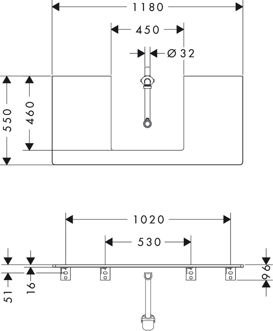 hansgrohe Konsole Xelu Q 1180 x 550 mm, Ausschnitt 500 x 480 mm, diamantgrau matt