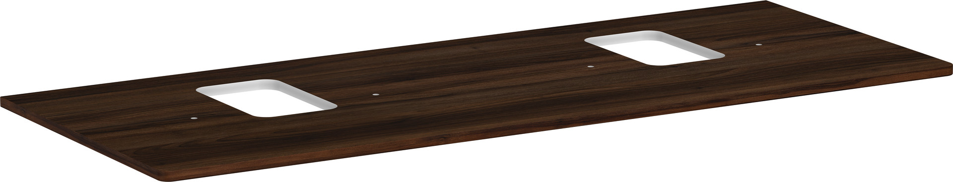 hansgrohe Konsole Xelu Q 1360 x 550 mm, 2 Ausschnitte, Aufsatzwaschtisch mit Hahnloch, Nussbaum dunkel