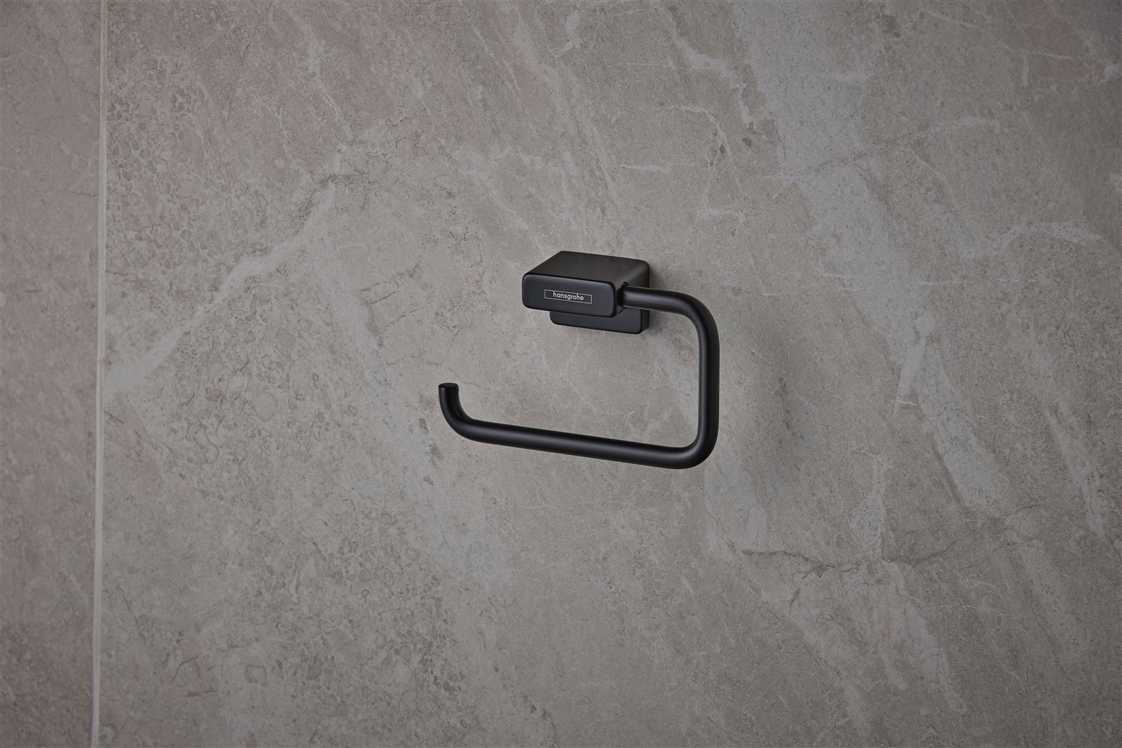 hansgrohe Papierrollenhalter AddStoris ohne Deckel, mattschwarz, Wandmontage, Metall