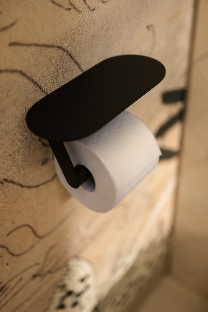Material aus durchgefärbten Kunststoff, offene Form-Toilettenpapier kann einfach eingehängt werden, Rollenbreite bis 122 mm geeignet, mit Ablagefläche, Anwendung kleben oder bohren, mit Klebeset, mit Befestigungsmaterial, verdeckte Befestigung