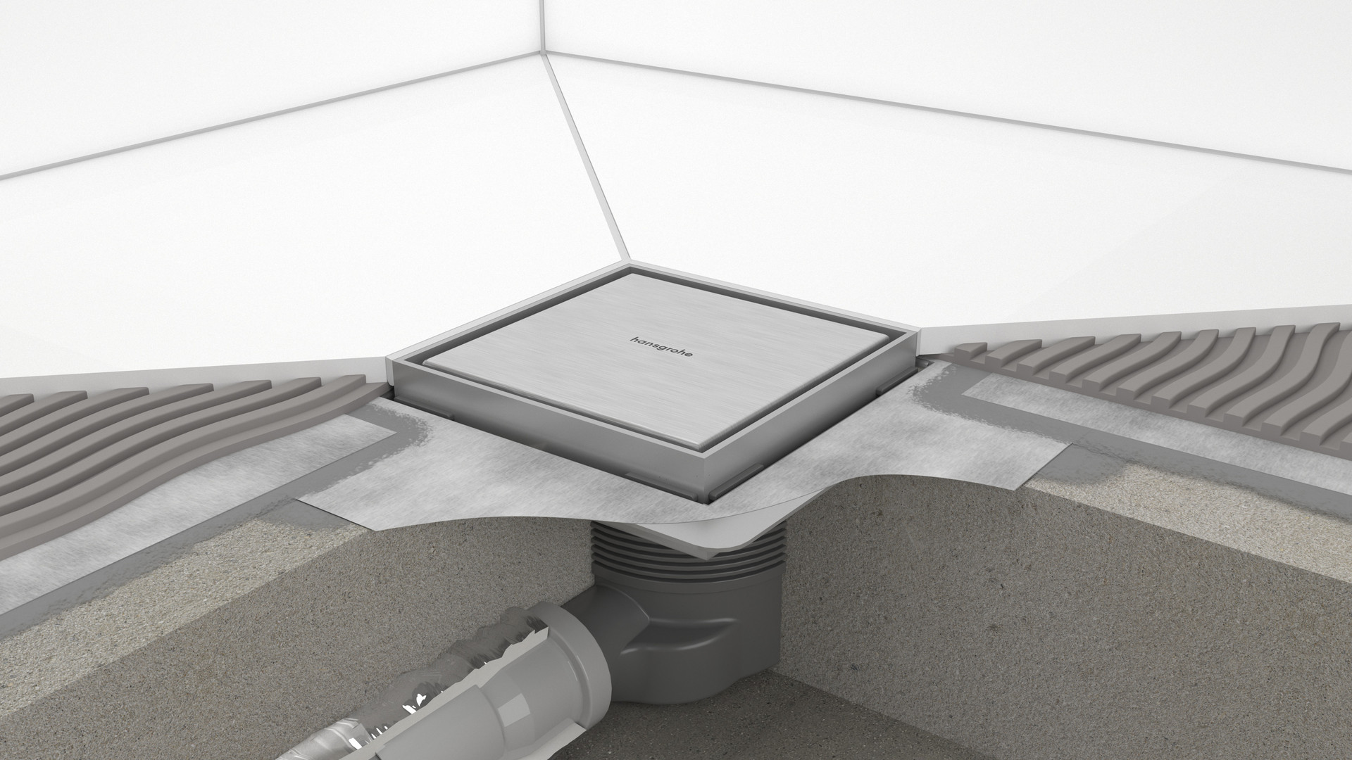 bestehend aus Punktablauf, Installationsset, Grundkörper, werkseitig vormontiertes Dichtvlies, Abdeckungsheber, Siphon, Bauschutzkappe, vormontierte Dichtmembran, rückseitig befliesbar, Sperrwasserhöhe bis zu max. 50 mm, Nenndurchmesser Anschluss DN 50, Richtung Auslass waagerecht, Anpassung an die Fliesenstärke durch höhenvertellbaren Rahmen (7-18 mm), Anwendungsbereich Neubau, Sanierung, herausnehmbarer Geruchsverschluss, dreh- und verstellbares Siphongehäuse, Abdeckungsheber ermöglicht Herausnehmen des Fertigsets, Art des Geruchsverschlusses flüssig, Mindestbauhöhe 79 mm, Höhe Grundkörper 59 mm, Material Siphon ABS, Montageart frei im Raum, kürzbares Siphon, Tiefe der Fliesenmulde 12 mm, Werkstoffgüte Abdeckung Edelstahl V2A (1.4301), geeignet für Primär- und Sekundärentwässerung, Quick Clean Antikalksystem
