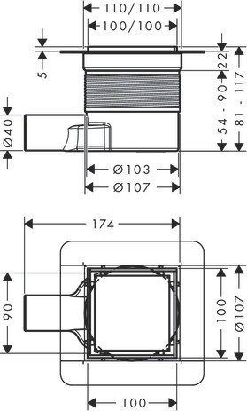 hansgrohe Punktablauf RainDrain Brillance Komplettset, 100 x 100 mm, mattschwarz
