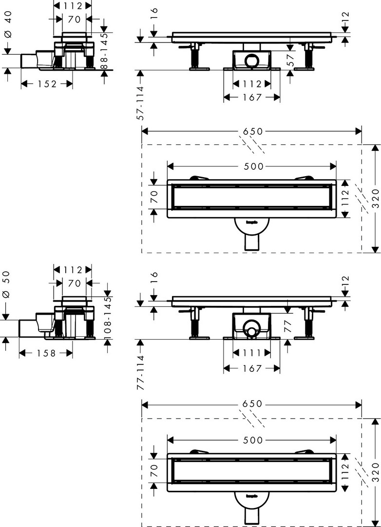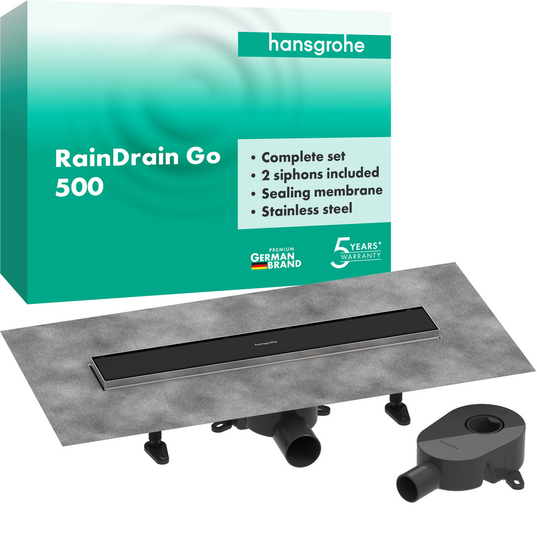 hansgrohe RainDrain Go Duschrinne Komplettset, DN40, DN50, Länge 500 mm, mattschwarz