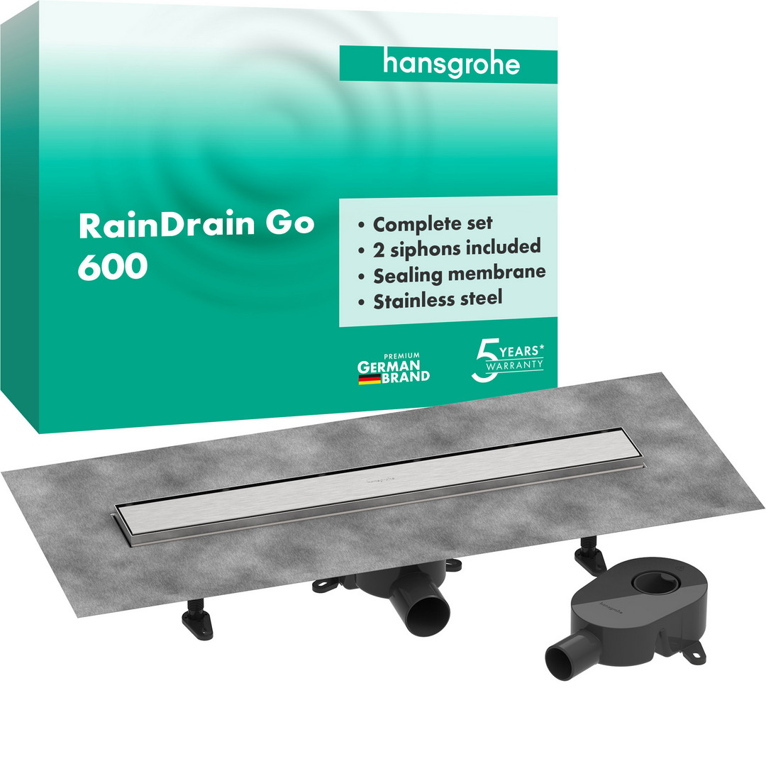 hansgrohe RainDrain Go Duschrinne Komplettset, DN40, DN50, Länge 600 mm, Edelstahl Finish