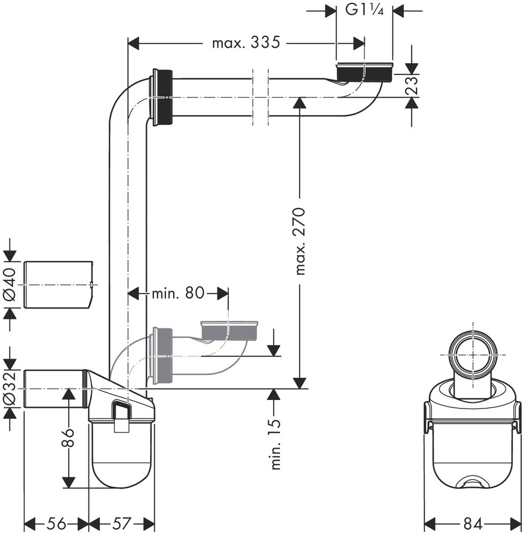 hansgrohe Raumsparsiphon Eingang G 1 1/4, Abgang: DN 32, weiß