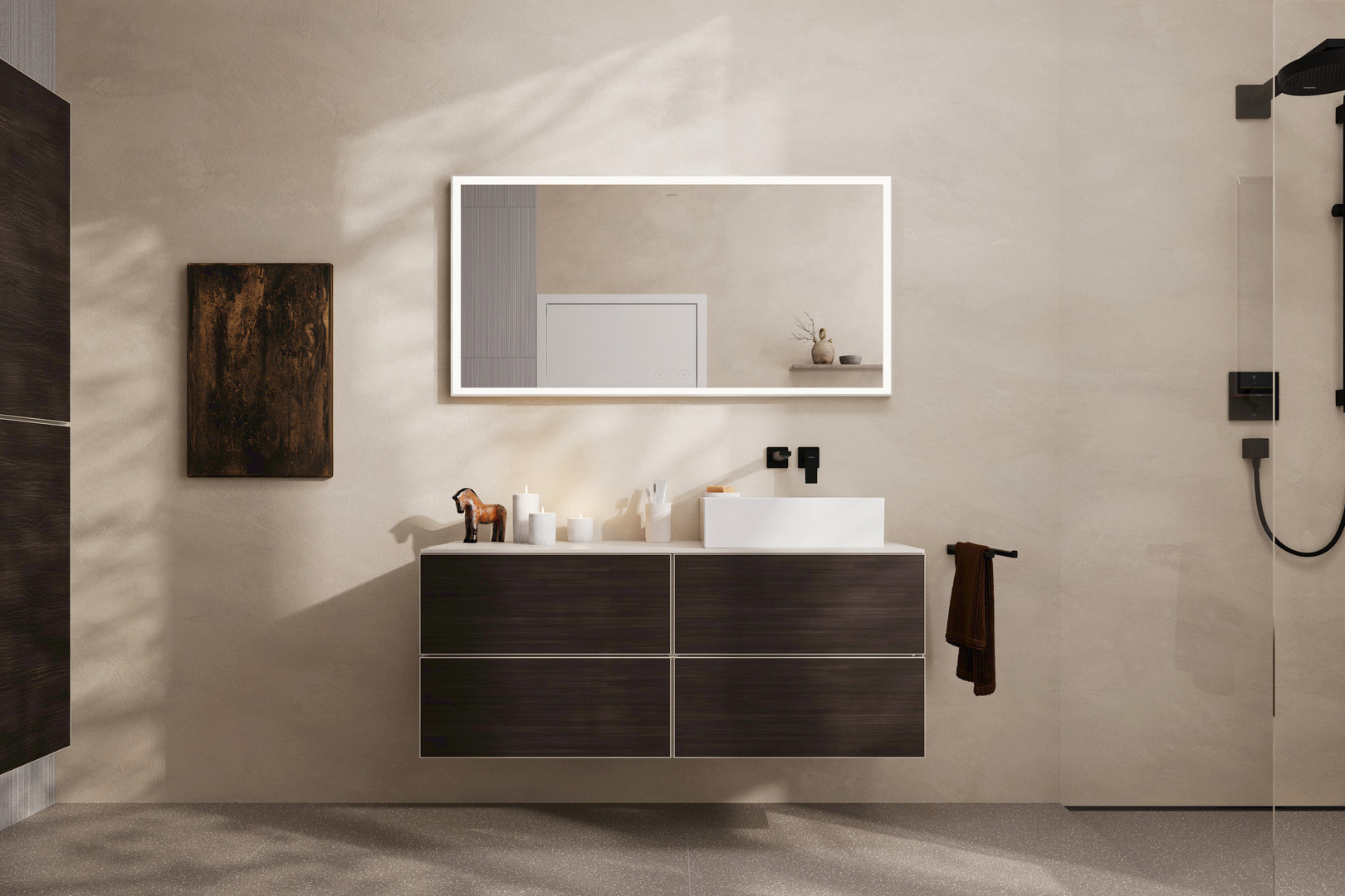 Material Spiegelglas, Material Rahmen Aluminium, Oberflächenmaterial Pulverlack, MoistureProof langlebiges Material, SmartTouch Lichtsteuerung über kapazitiven Sensor, Sensorschalter in der Spiegelfläche, Leuchtmittel LED, austauschbar, direktes LED Licht mit 5 verschiedenen Farbtemperaturenabstufungen, indirektes RGB LED Licht, Auswahlmöglichkeit aus 7 Farbtönen und 1 Weißton, Farbtemperatur 2700 - 6500 K, LED Lebensdauer > 50.000 Stunden, direktes LED Licht Energieeffizienzklasse C, indirektes RGB LED Licht Energieeffizienzklasse G, stufenlos dimmbar, AntiFog mit Spiegelheizung, Auto-off Funktion verfügt über eine Abschaltautomatik für alle Funktionen, mit Memory Funktion Dimming, Farbtemperatur und RGB LED Einstellungen, Eingangsspannung 220 - 240 V AC/50/60 Hz, Ausgangsspannung 24 V - DC, Schutzart IP21, mit Befestigungsmaterial, verdeckte Befestigung, Wandmontage