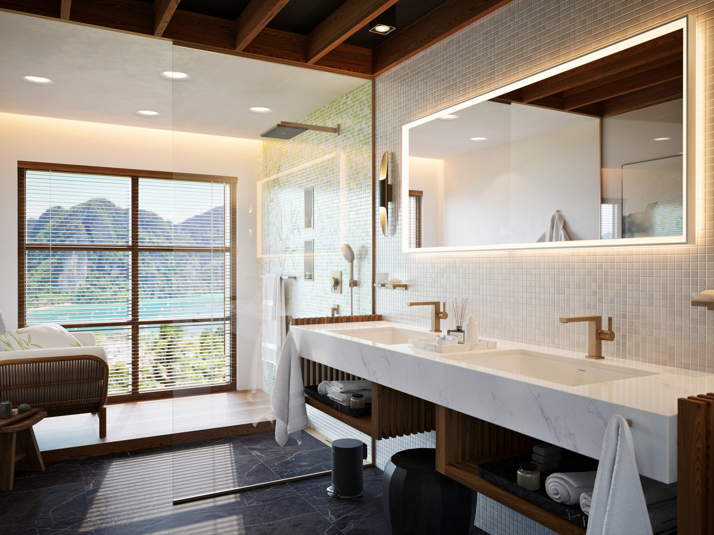 Material Spiegelglas, Material Rahmen Aluminium, Oberflächenmaterial Pulverlack, MoistureProof langlebiges Material, SmartTouch Lichtsteuerung über kapazitiven Sensor, Sensorschalter in der Spiegelfläche, Leuchtmittel LED, austauschbar, direktes LED Licht mit 5 verschiedenen Farbtemperaturenabstufungen, indirektes RGB LED Licht, Auswahlmöglichkeit aus 7 Farbtönen und 1 Weißton, Farbtemperatur 2700 - 6500 K, LED Lebensdauer > 50.000 Stunden, direktes LED Licht Energieeffizienzklasse C, indirektes RGB LED Licht Energieeffizienzklasse G, stufenlos dimmbar, AntiFog mit Spiegelheizung, Auto-off Funktion verfügt über eine Abschaltautomatik für alle Funktionen, mit Memory Funktion Dimming, Farbtemperatur und RGB LED Einstellungen, Eingangsspannung 220 - 240 V AC/50/60 Hz, Ausgangsspannung 24 V - DC, Schutzart IP21, mit Befestigungsmaterial, verdeckte Befestigung, Wandmontage