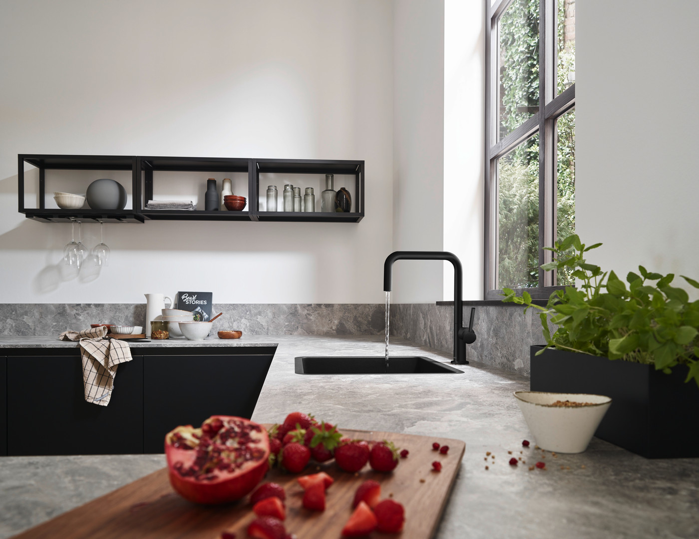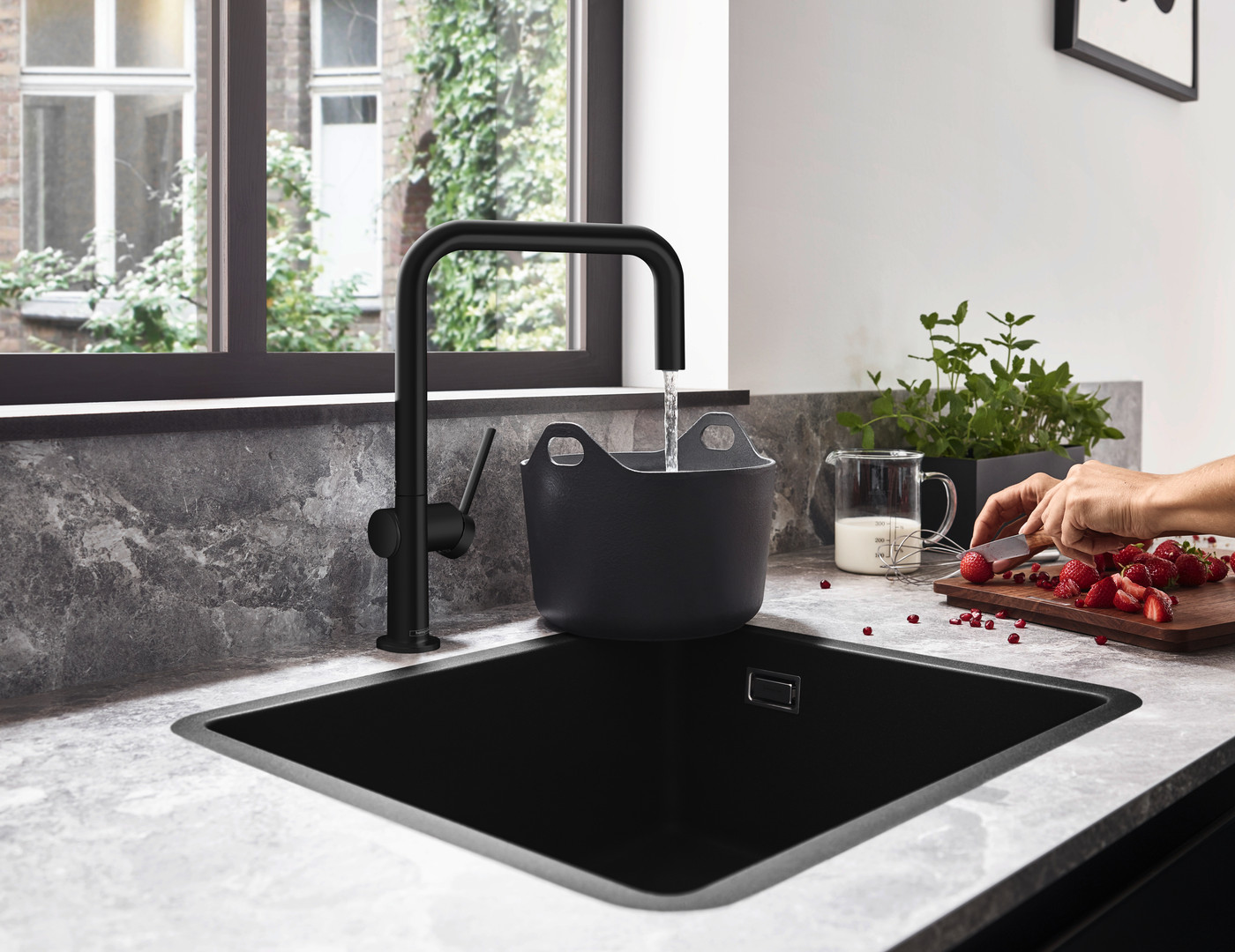hansgrohe Unterbauspüle 450 S510-U450 448x398mm, 1 Hauptbecken, ohne Hahnloch, graphitschwarz