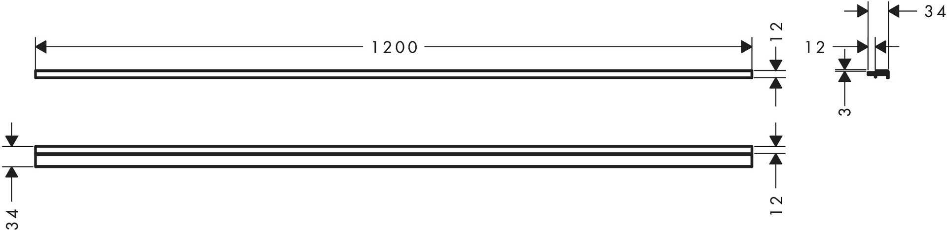 Ausführung links, rechts, Material Edelstahl V2A (1.4301), Höhe 34 mm, Montage Wand, Länge 1200 mm