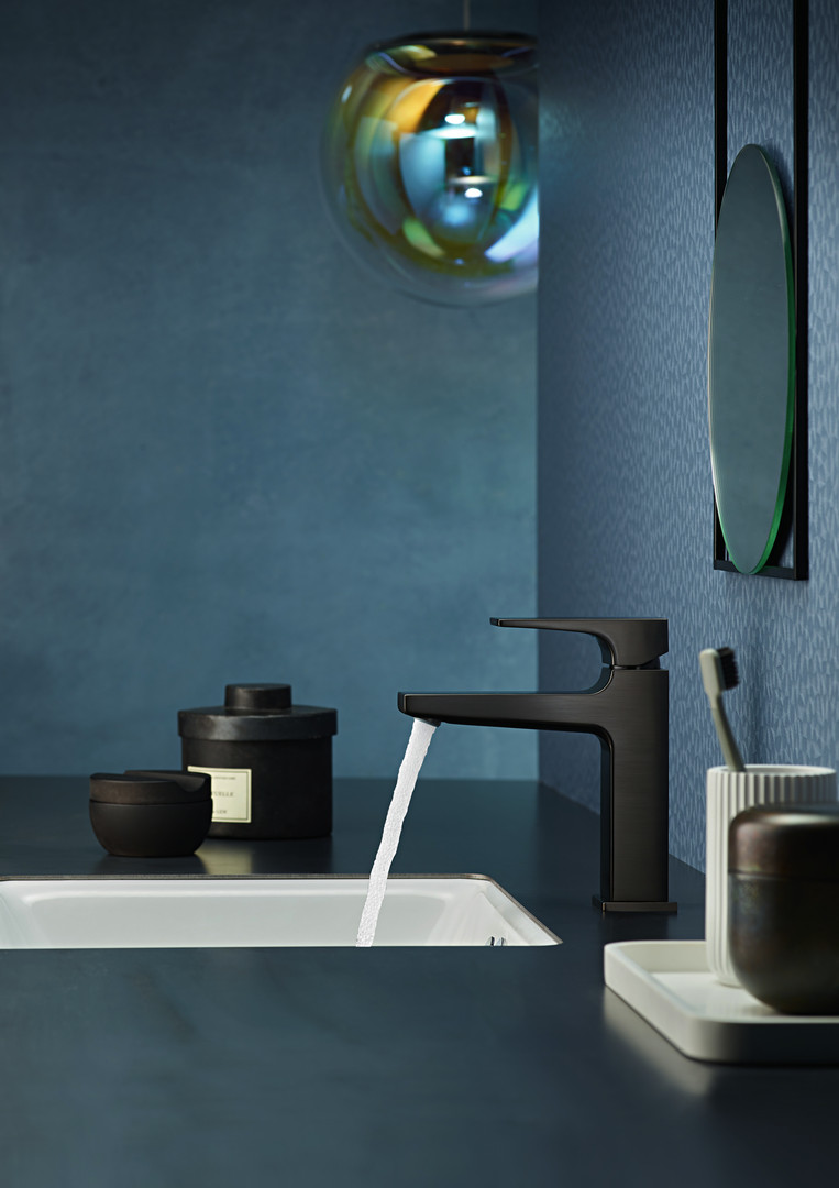 hansgrohe Waschtisch-Einhebelmischer 110 Metropol mit Hebelgriff, Push-Open-Ablaufgarnitur, Ausladung 135mm, brushed black chrome