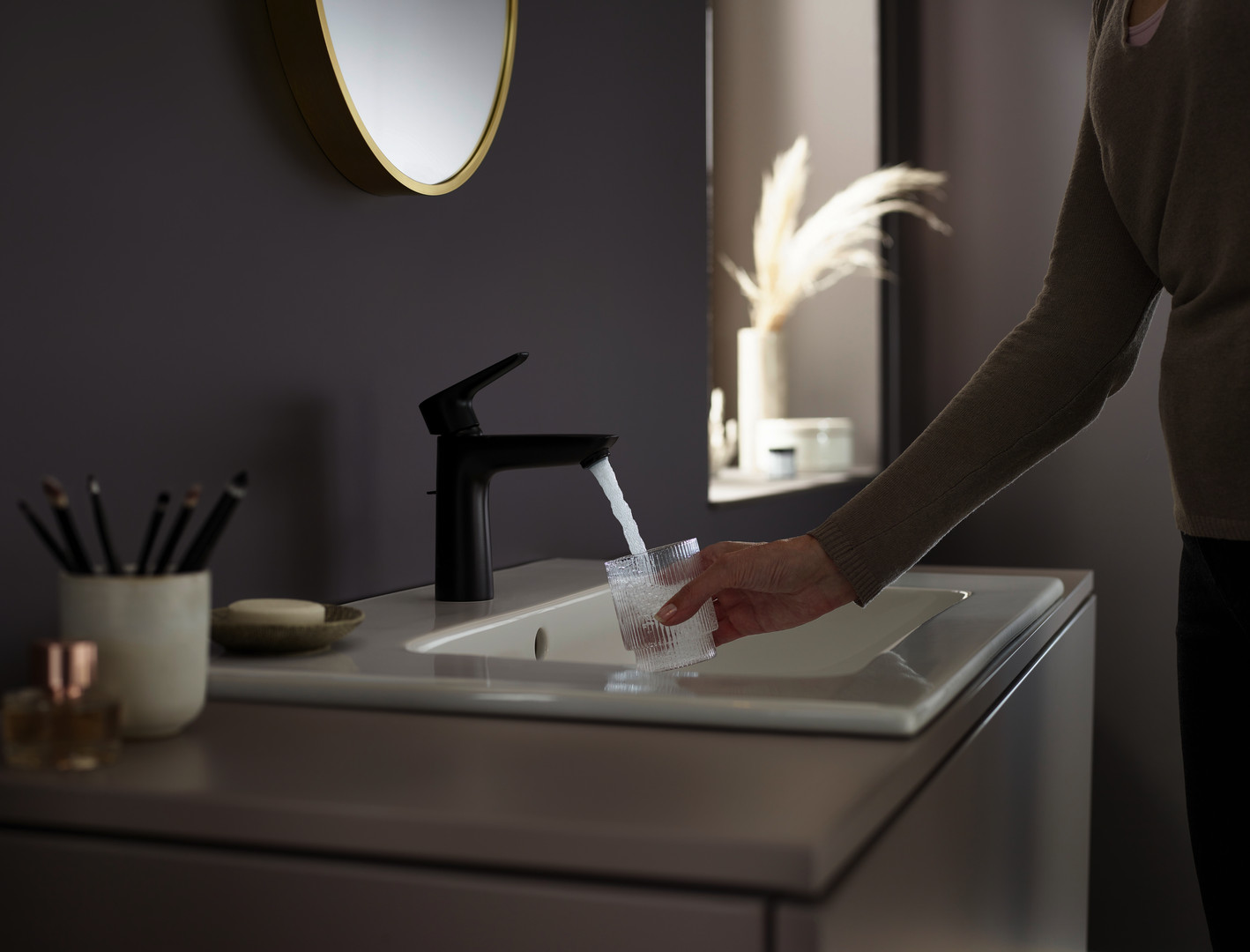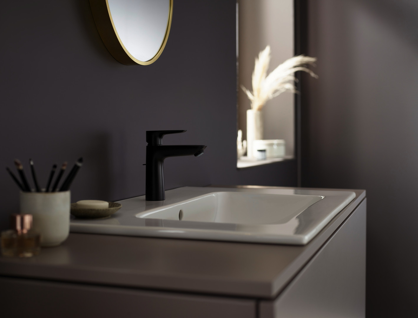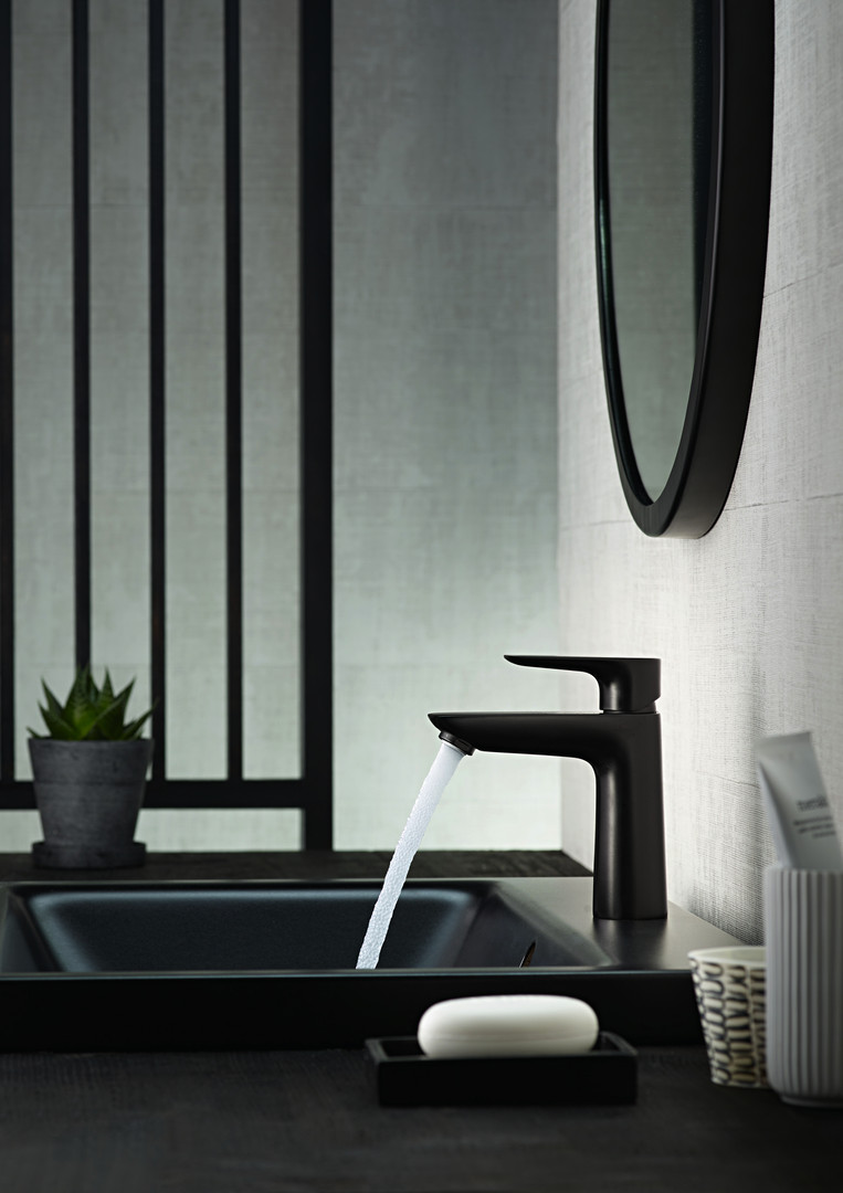 hansgrohe Waschtisch-Einhebelmischer 110 Talis E CoolStart mit Zugstangen-Ablaufgarnitur, mattschwarz
