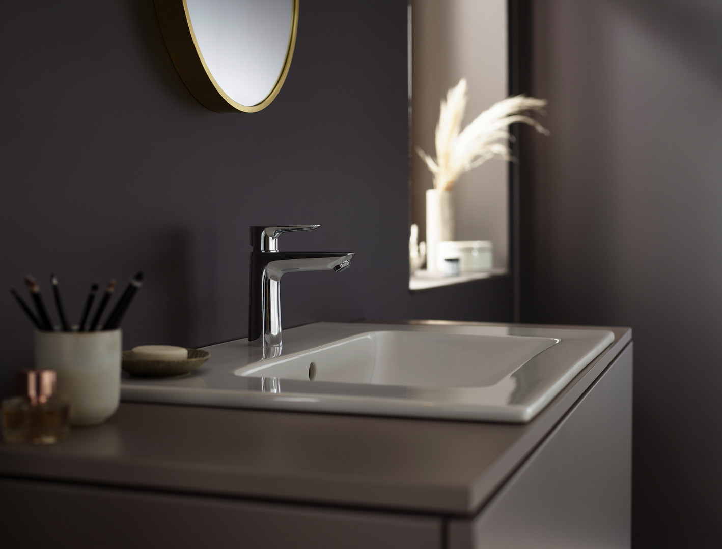 ComfortZone 110, Kaltwasser in Mittelstellung, Ausladung 112 mm, Auslaufhöhe 104 mm, Normalstrahl, max. Durchflussmenge bei 3 bar 5 l/min, Keramikmischsystem, Temperaturbegrenzung einstellbar, für Durchlauferhitzer geeignet, Anschlussart G 3/8 Anschlussschläuche, Anschlussgröße DN 15, EcoSmart, AirPower Technologie, Quick Clean Antikalksystem, nicht für Aufsatzwaschtische geeignet