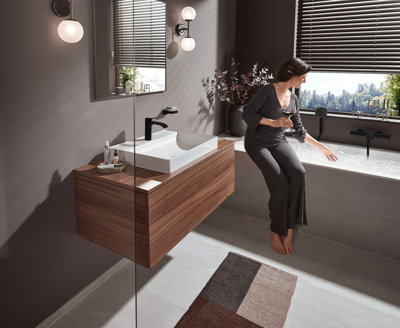 hansgrohe Waschtisch-Einhebelmischer 110 Vivenis ohne Zugstangen-Ablaufgarnitur, schwarz matt
