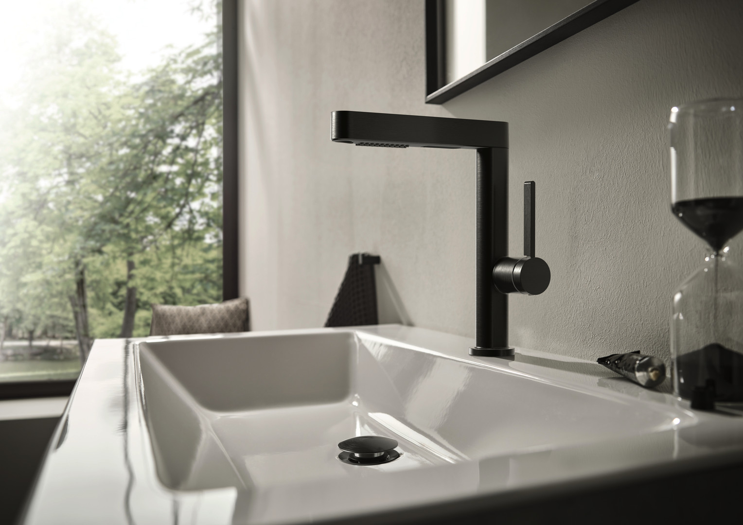 hansgrohe Waschtisch-Einhebelmischer 230 Finoris mit Ausziehbrause 2jet, Push-Open-Ablaufgarnitur, brushed black chrome