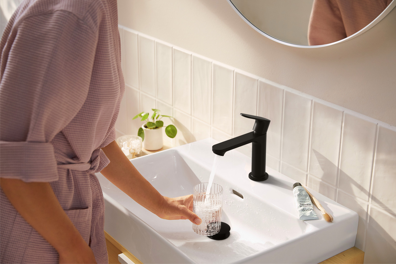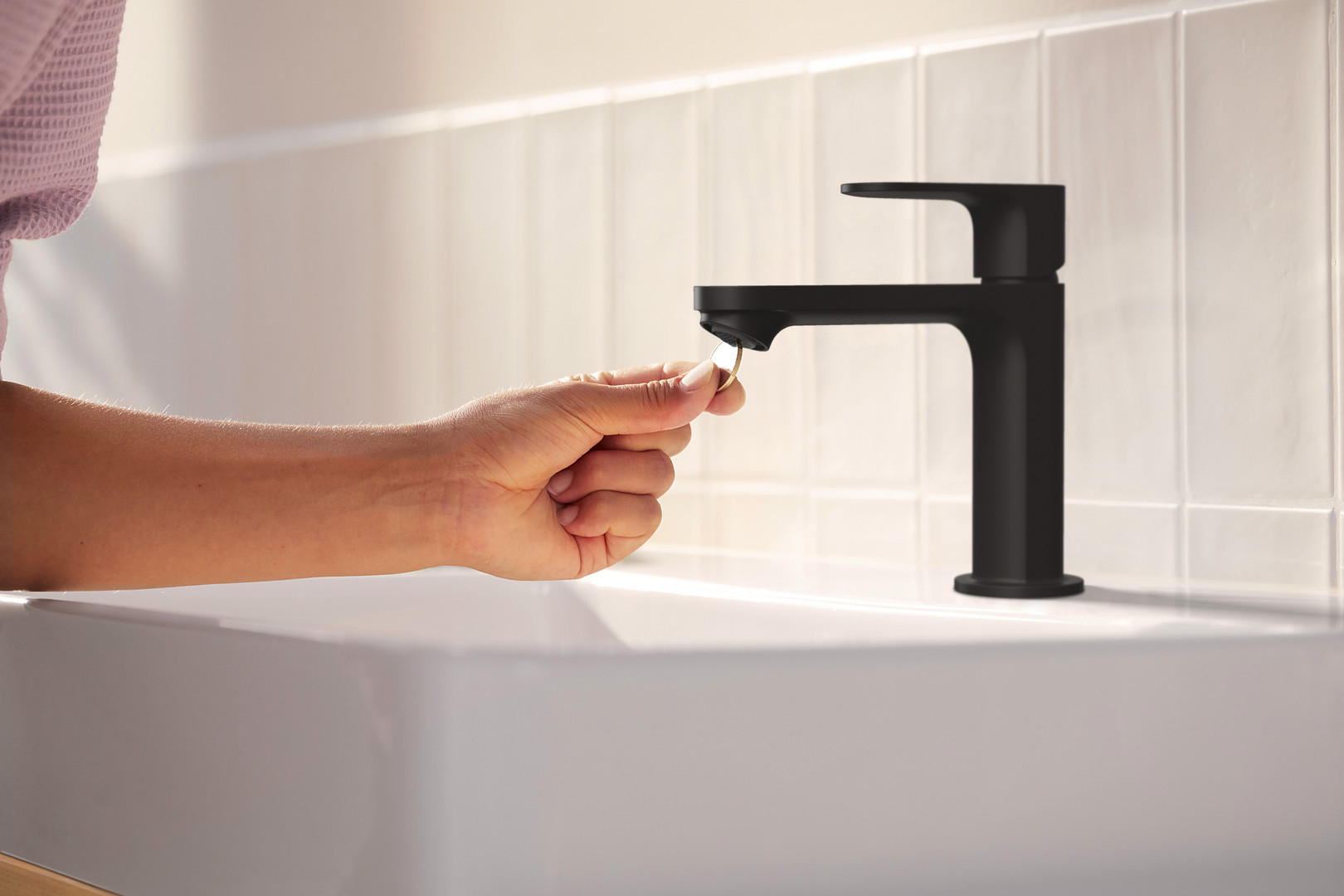 hansgrohe Waschtisch-Einhebelmischer Rebris S 110 CoolStart ohne Ablaufgarnitur, mattschwarz