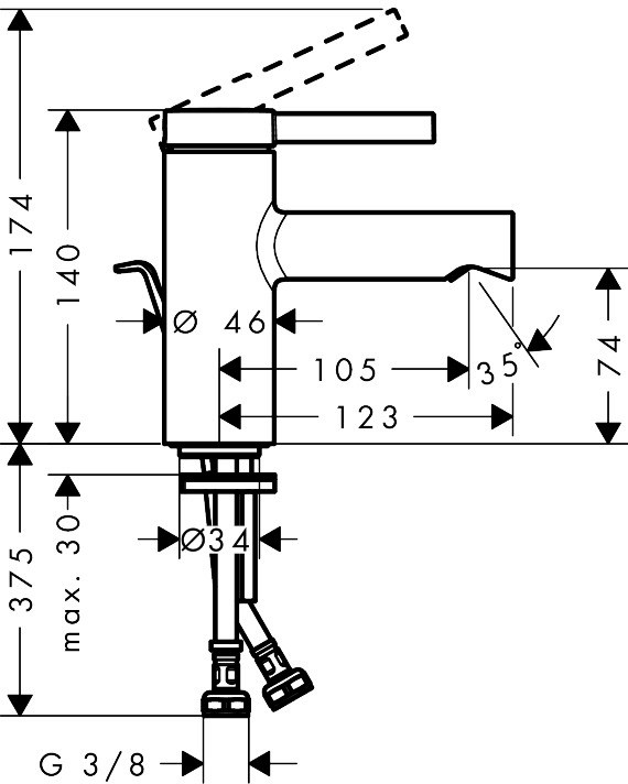 | Art der Ablaufgarnitur | Pop-up-Ventil mit vertikalem Hebel |