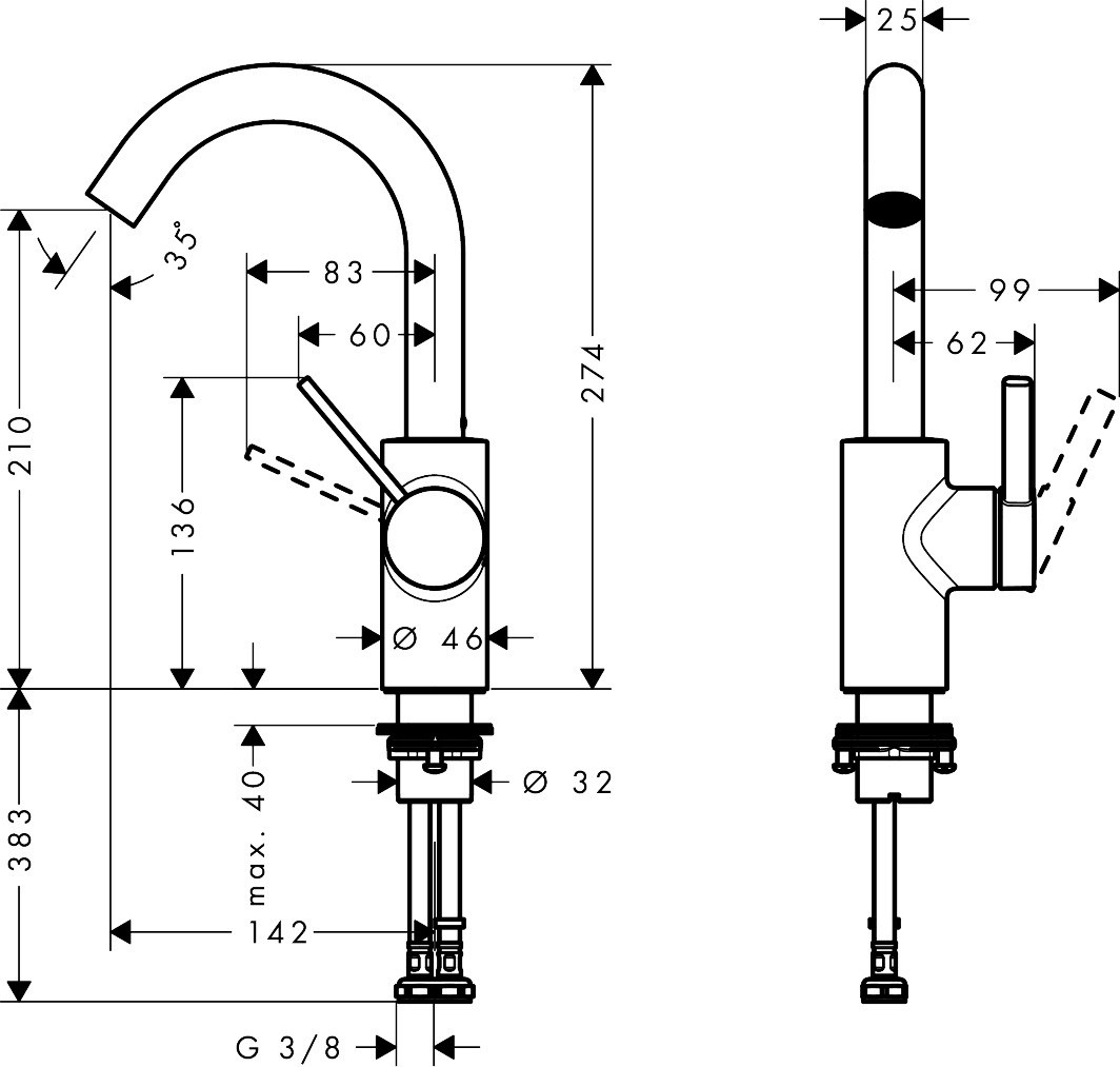 | Aufbauhöhe Unterkante Hahnauslass | 210 mm |