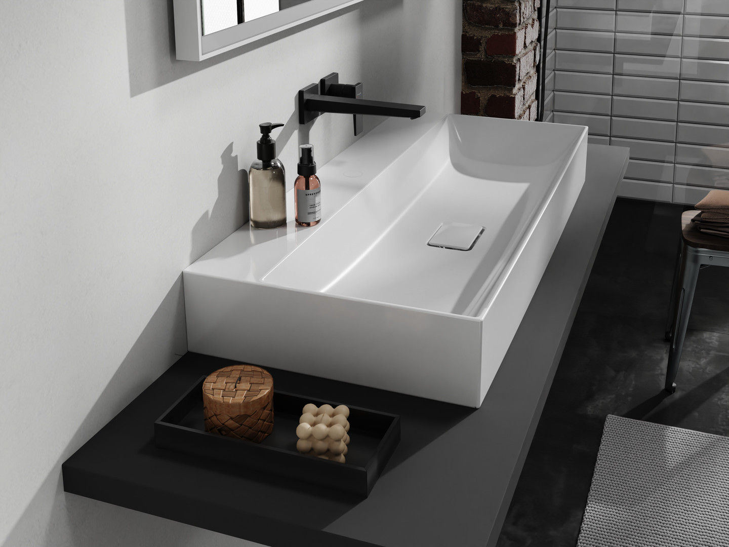 besteht aus Aufsatzwaschtisch geschliffen, Ablaufgarnitur, Abdeckung. Material Keramik, 1000x480x140 mm, Beckeninnenhöhe 105 mm, schmutzabweisende Glasur, Glanzgrad glänzend, geschliffene Beckenunterseite, keramische Abdeckung, mit Schallschutzmatte nach Maß, ohne Ablage, unverschließbare Ablaufgarnitur, Einbauart Aufsatz und wandhängend, passend für Xevolos Waschtischunterschränke mit Konsole