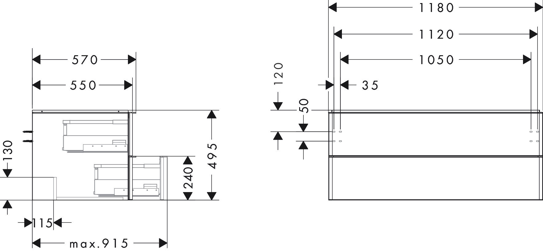 hansgrohe Waschtischunterschrank Xelu Q 1180x485x550mm, 2 Schubkästen, weiß hochglanz, mattweiß