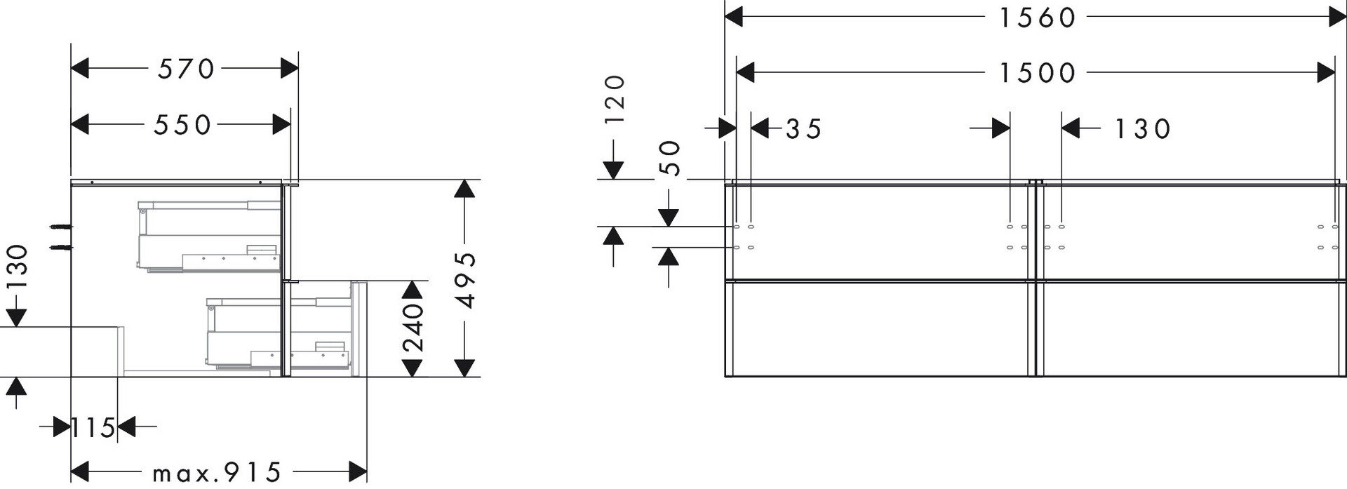 hansgrohe Waschtischunterschrank Xelu Q 1560x485x550mm, 4 Schubkästen, diamantgrau matt, mattweiß