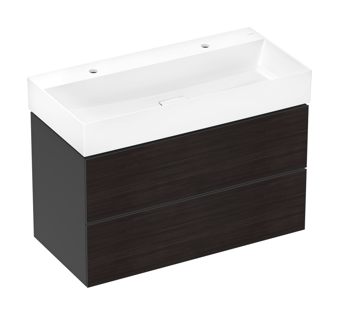 hansgrohe Waschtischunterschrank Xevolos E 980x555x475mm, 2 Schubladen, schiefergrau matt, Eiche dunkel