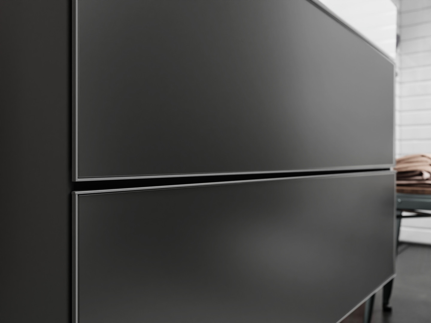 Korpus: MDF, Oberfläche Korpus: Lack, Frontrahmen: Aluminium, Oberfläche Frontrahmen: Pulverlack, SmoothSurface, AntiFingerprint, Moisture Proof, grifflos, PushOpen-Funktion, Vollauszug, ohne Siphonausschnitt, SoftClose, Inneneinteilung, mit Basis Boxen Set, mit Raumsparsiphon Sperrwasserhöhe 50 mm, Wandmontage, vormontiert, mit Befestigungsmaterial, Wechseln der Fronten möglich