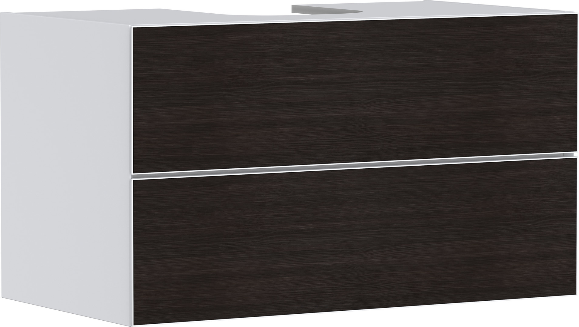 für Konsolen mit Aufsatzwaschtisch geschliffen, Korpus: MDF, Oberfläche Korpus: Lack, Frontrahmen: Aluminium, Oberfläche Frontrahmen: Pulverlack, SmoothSurface, AntiFingerprint, Moisture Proof, grifflos, PushOpen-Funktion, Vollauszug, ohne Siphonausschnitt, SoftClose, Inneneinteilung, mit Basis Boxen Set, mit Raumsparsiphon Sperrwasserhöhe 50 mm, Wandmontage, vormontiert, mit Befestigungsmaterial, Wechseln der Fronten möglich