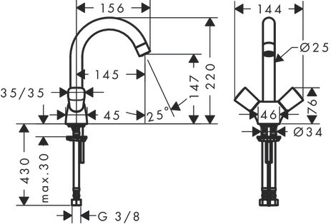 hansgrohe Zweigriff-Waschtisch-Armatur Logis 150 ohne Ablaufgarnitur, chrom
