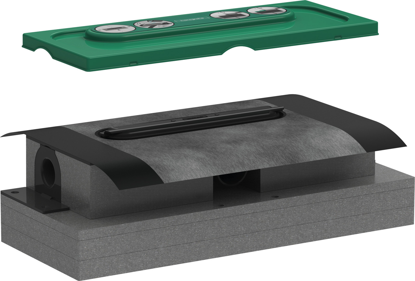 bestehend aus Grundkörper, Siphon, werkseitig vormontiertem Dichtvlies, Höhenverstellplatten, Bauschutzkappe, passend für alle Duschrinnen, Anwendungsbereich: Neubau, Sanierung, Sperrwasserhöhe 30 mm, Mindestbauhöhe 57 mm, Alblaufleistung mit Siphon bis zu 33 l/min, Ablaufleistung mit Dryphon bis zu 55 l/min, Nenndurchmesser Anschluss DN 40, Richtung Auslass waagerecht, Anschluss 3-seitig, Montagehalterung ermöglicht Befestigung am Boden, mit Hilfe der Schaumstoffplatten höhenverstellbar, Montageart wandangebunden, frei im Raum, herausnehmbarer Siphon, geeignet für schallentkoppelte Montage