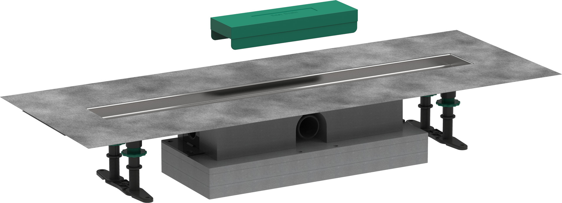 bestehend aus Installationsset, Grundkörper, werkseitig vormontiertem Dichtvlies, Siphon, Höhenverstellplatten, Anwendungsbereich Neubau, Sanierung, Sperrwasserhöhe 30 mm, Ablaufleistung mit Siphon bis zu 33 l/min, Ablaufleistung mit Dryphon bis zu 55 l/min, Nenndurchmesser Anschluss DN 40, Richtung Auslass waagerecht, Anschluss 3-seitig, mit höhenverstellbaren Stellfüßen und Verfliesungshilfe zur Montage, Montagehalterung ermöglicht einfache Befestigung am Boden, mit Hilfe der Schaumstoffplatten höhenverstellbar, mit integriertem Gefälle, Montageart wandangebunden, frei im Raum, leicht zu reinigender Siphon, herausnehmbarer Siphon, Werkstoffgüte Installationsset: Edelstahl V2A (1.4301)