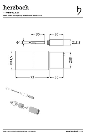 Herzbach UP-Verlängerung Logic 30mm, nicht kürzbar, für 2-/3-Wege Umstellung, chrom