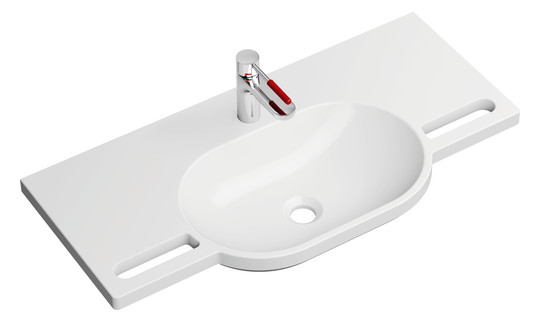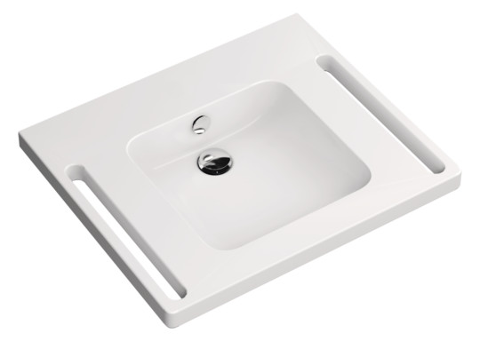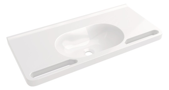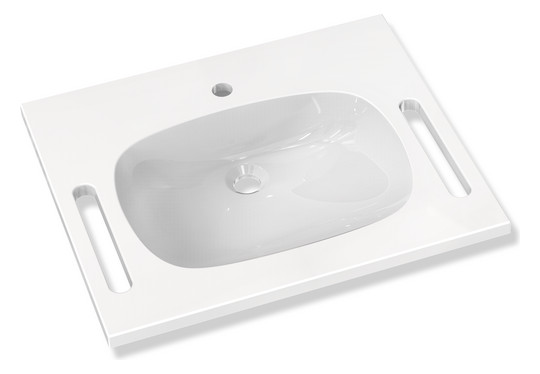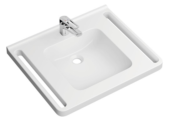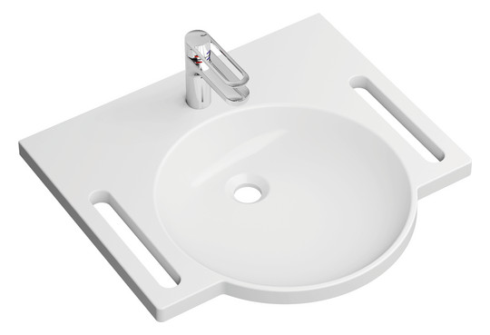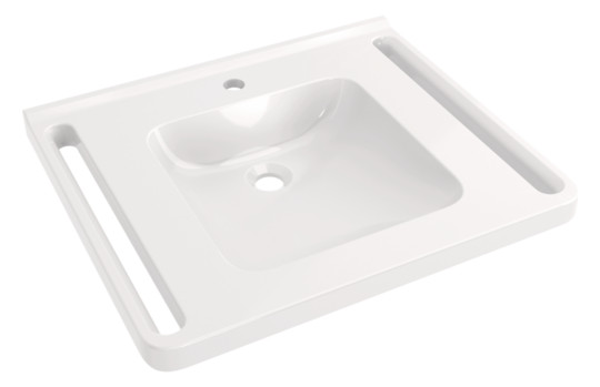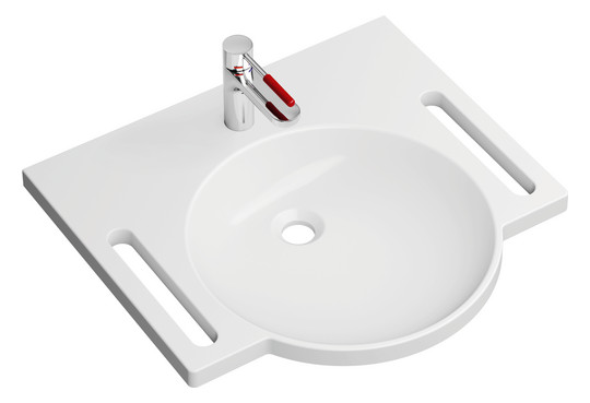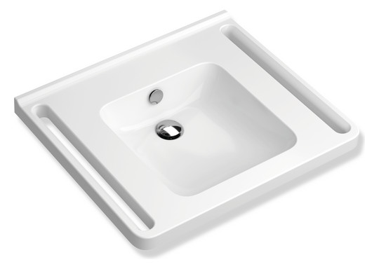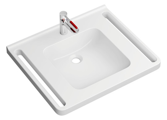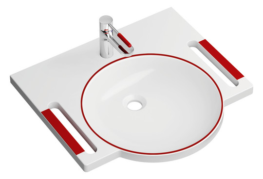 HEWI Mineralguss-Demenz-Waschtisch 950 60 x 55 cm, mit Hahnloch, ohne Überlauf, weiß mit Rotmarkierung