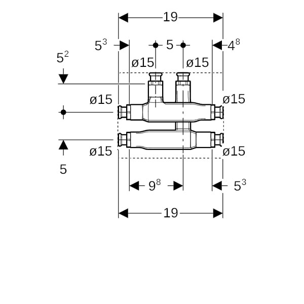 Geberit Kreuzungs-T-Stück Mapress Ø 15 x 15 x 15 mm, mit Dämmbox, Messing