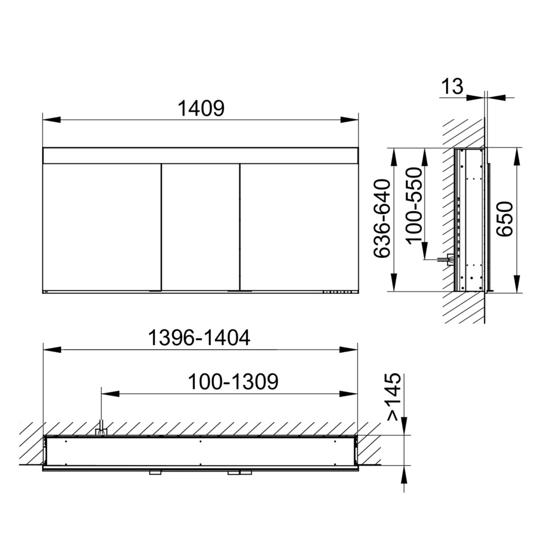 KEUCO Spiegelschrank Edition 400 DALI 141x65x15,4cm, 3-türig, 52 W, Wandeinbau