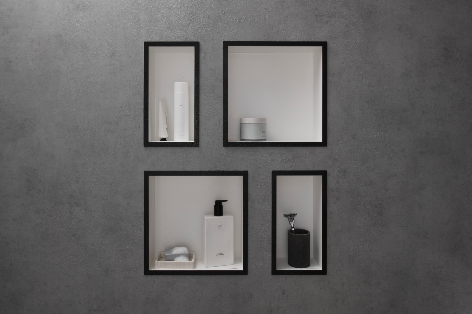 bestehend aus Wandnische mit Designrahmen, Dichtungsset, Oberfläche Korpus mattweiß, Einbautiefe 100 mm, Anwendungsbereich Neubau, Sanierung, speziell für die Anwendung im Nassbereich, Wandtyp: Trockenbau, Nassbau, Material Dichtungsset: Polystyrol (PS), Werkstoffgüte Wandnische Edelstahl V2A (1.4301), Vermeidung von Wasserschäden durch wasserdichtes Grundset und vormontiertes Dicht-Vlies