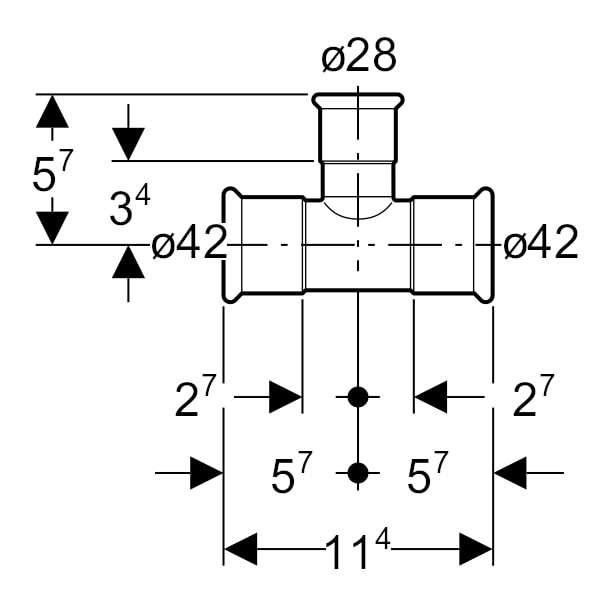 Geberit T-Stück Mapress Therm DN 40/25/40, Durchmesser 42/28/42 mm, 90Grad, reduziert