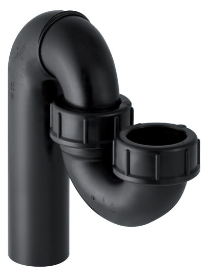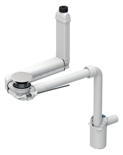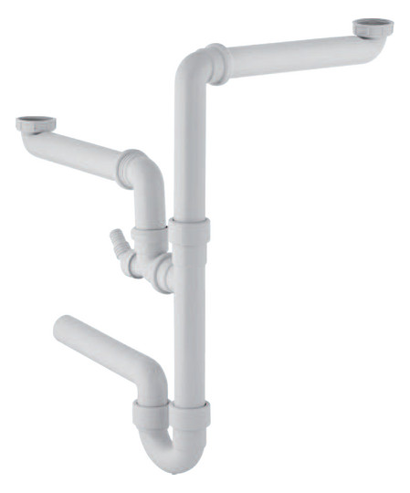 Geberit Rohrbogengeruchsverschluss G 1 1/2 x 50mm, Winkelschlauchtülle, Abgang vertikal, für 2 Spülbecken, weiß