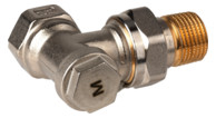 Resideo Rücklaufverschraubung Verafix, Eck, Messing vernickelt, reproduzierbare Voreinstellung