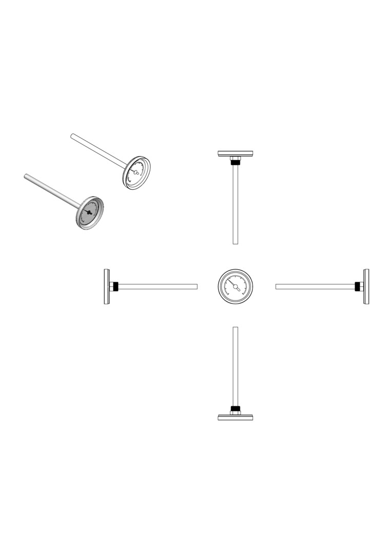 strawa Friwara Zeigerthermometer 80x200mm GK2 bis 120 °C inkl. Tauchhülse 1/2"