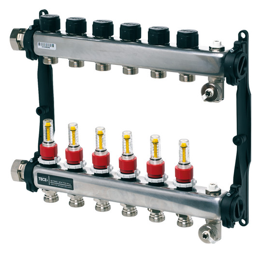 TECE Heizkreisverteiler TECEfloor SLQ, Durchflussanzeige, poliert, 1" IG, flachdichtend, Edelstahl